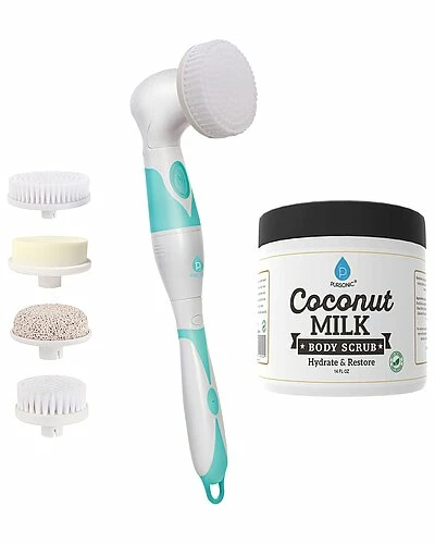 - Renew your skin for greater smoothness and an enhanced glow with this Pursonic Facial and Body 360° Cleansing Brush. This all-in-one cleansing and exfoliating tool features four dedicated brush heads to work on the entire skin on your body from face to feet. This battery-powered cleansing brush is conveniently cordless and waterproof for portability and flexible use, so you can easily pack it in your luggage and continue your regular skincare routine wherever you go. The facial brush head attachment with this Pursonic Facial and Body 360° Cleansing Brush is ideal for use on the face and neck, while the larger body brush provides greater coverage when cleansing and removing dead skin cells from your arms, legs and back. Both brush heads have fine bristles for gentle scrubbing and pleasant use. Attach the included extended handle to the main unit to easily clean hard-to-reach places. This waterproof Pursonic Facial and Body 360° Cleansing Brush can be used in and out of the shower to suit your specific skincare routine. Opt to use each brush head with your favorite cleansing products for beautiful results. Use the sponge attachment with this Pursonic Facial and Body 360° Cleansing Brush to gently cleanse sensitive areas. For a rejuvenating pedicure or foot spa treatment, use the pumice stone head to exfoliate away callouses and rough spots, and run the stone over your elbows and knees to soften dry skin. Anti-Cellulite Scrub: Caffeine is the one of the enemy of Cellulite and is an important ingredient in all cellulite cream. This Coffee Scrub may help with premature skin aging appearances. Anti-Acne Treatment & Skincare: Coffee grounds and dead sea salts may helps to remove dead cells thus giving you a fresher, younger, more moisturized appearance. Lightens Scars: Caffeine in a coffee scrub may help to lighten the scars and tighten the skin.
